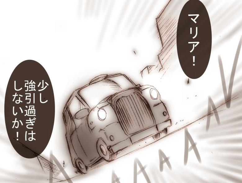 その後ロンドンタクシーで逃亡するマリつば。